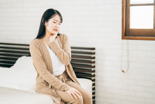 奥歯のさらに奥に親知らずがある場合は、智歯周囲炎が原因のことがあります。親知らずは斜めに生えたり、一部だけ見えていたりすることが多く、周囲に汚れがたまりやすい歯です。その結果、歯茎に炎症が起こり、腫れや痛み、口の開けにくさにつながることがあります。疲れがたまったときや、清掃が不十分なときに悪化しやすいのも特徴です。