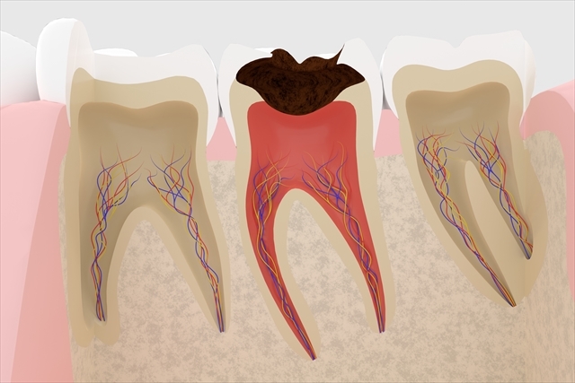 次に、異常を察知するセンサーとしての役割です。噛み合わせの違和感や強い力がかかったときに「痛み」として知らせてくれるため、歯や歯茎への過度なダメージを防ぎやすくなります。神経がない歯は、この警告サインに気づきにくく、知らないうちにトラブルが進行することもあります。